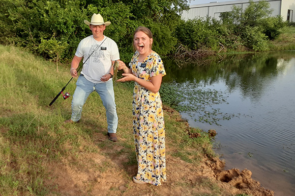 Another fun thing that happened this week! Our mission President encourages us to take some time to be outside every day, and our Elders asked if they could go fishing for outside time and President said yes! So they came to the barn and went fishing in our pond! They caught around 5-6 fish and we were able to just hangout and chat and enjoy nature. Super fun!