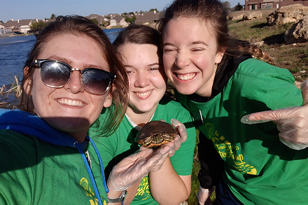 We had the fun opportunity on Saturday to do a neighborhood cleanup! We got free t-shirts and we went around and picked up all the garbage we could find. We ended up going to a pond and cleaning up a BUNCH of trash there. It made me kind sad actually how much trash there was… So it felt good to clean it all up! And we met a little turtle friend while we were doing it! We named him John.
